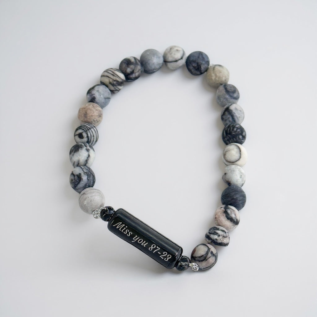 Een gepersonaliseerde armband met as van uw dierbare, speciaal voor u op maat gemaakt