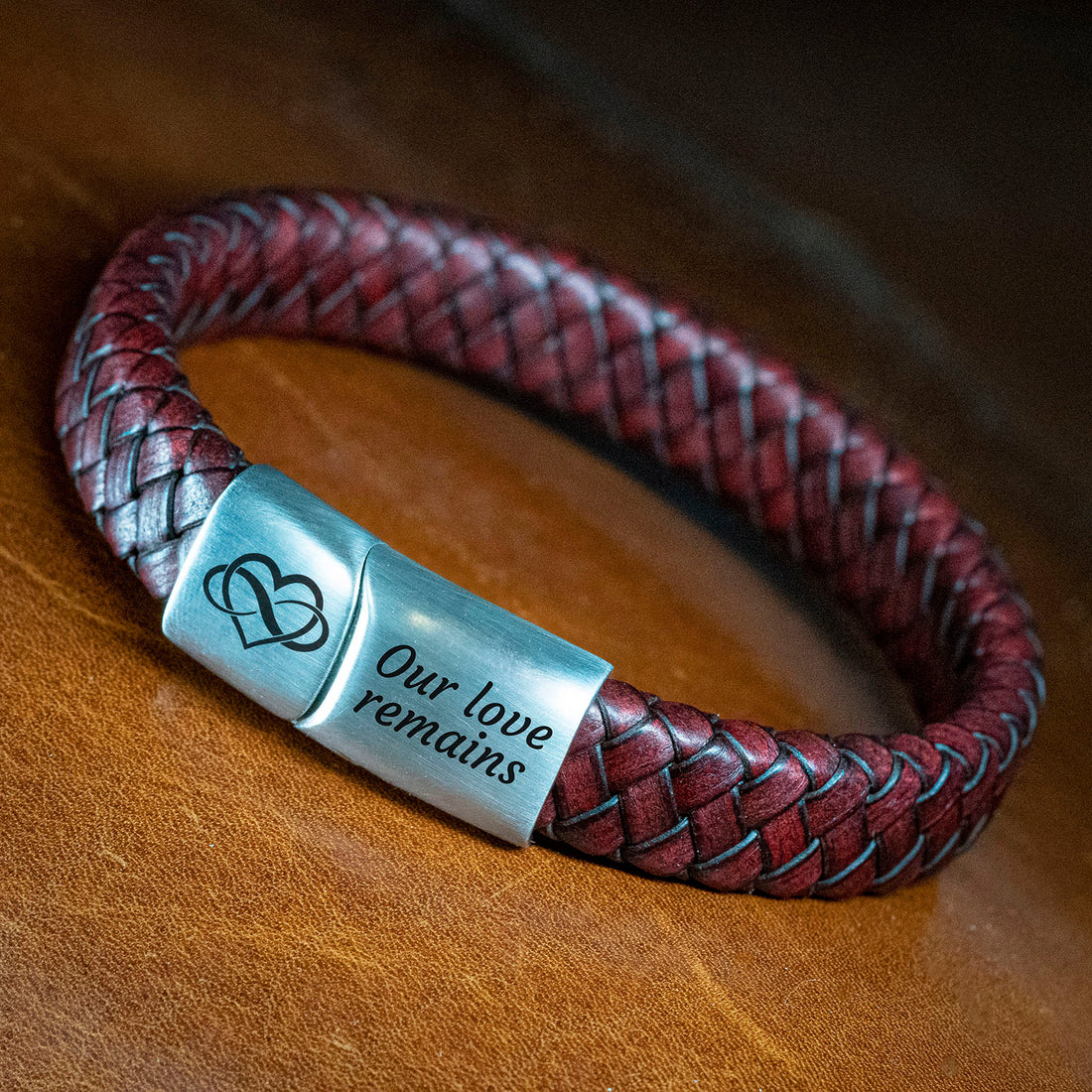 Vingerafdruk gravure op Dubbel gevlochten leren armband
