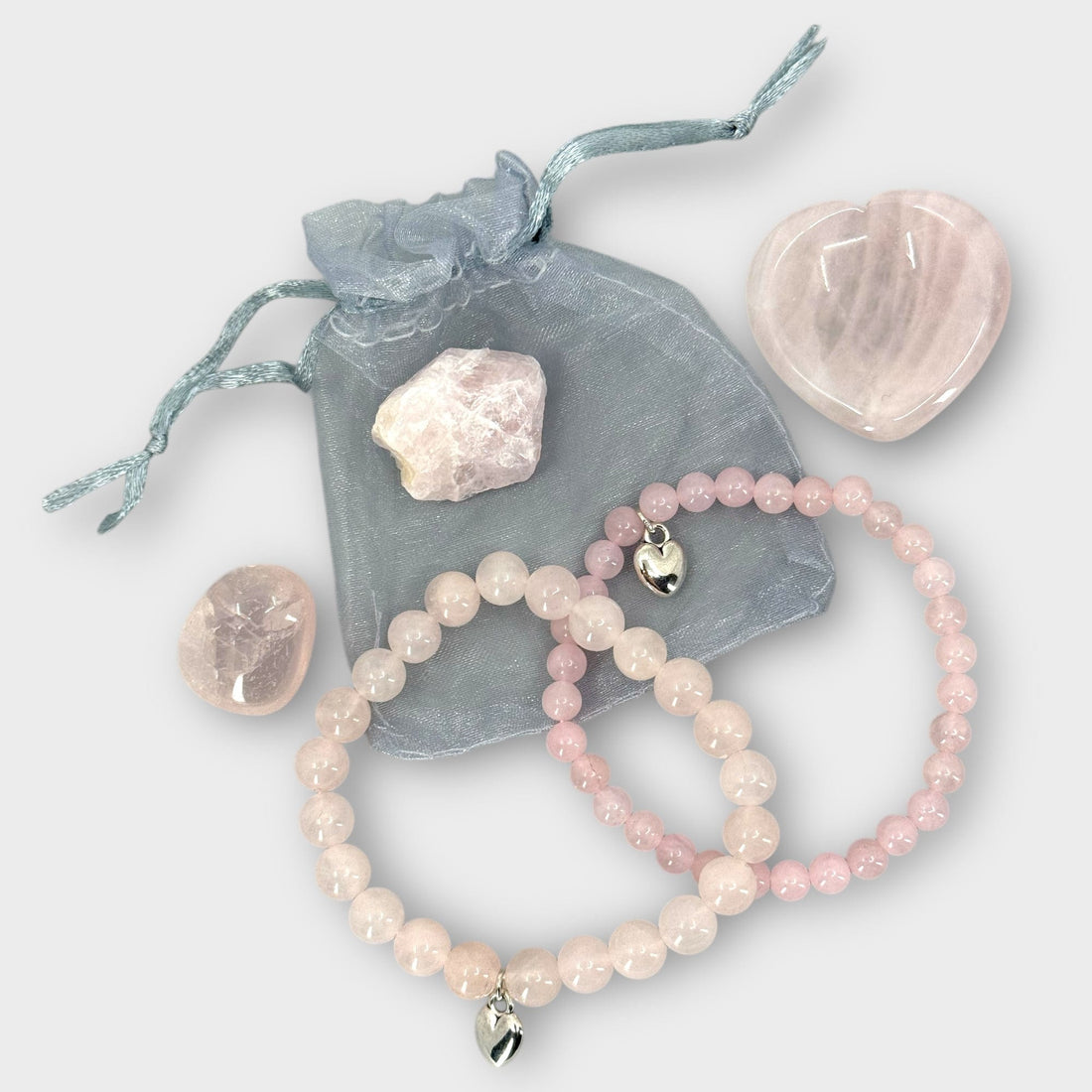 2 Rozenkwarts Armbanden en Edelstenen Set + Ruwe en Geslepen Edelstenen met Hartje