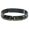 De armband is gemaakt van hoogwaardig roestvrij staal in de kleursamenstelling zwart en goud. Het middelste gedeelte van de armband biedt ruimte voor jouw eigen bijzondere tekst of symbool. Zo maak je het cadeau extra persoonlijk en speciaal!