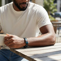 Het ebbenhout staat bekend om zijn duurzaamheid en elegante uitstraling. De natuurlijke nerfstructuur geeft elke armband een uniek karakter, terwijl de diepe zwarte tint moeiteloos te combineren is met elke outfit. De blauwe accenten in het roestvrij staal zorgen voor een verfijnde, moderne touch die direct opvalt.