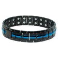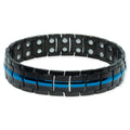Op zoek naar een armband met een stoer design én gezondheidsvoordelen? Dan is onze Magneet Armband met blauwe elementen de perfecte keuze voor jou! Het zwarte roestvrij staal zorgt voor een robuuste uitstraling en het blauwe element over de lengte van de armband geeft net dat beetje extra stijl.