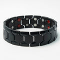 Onze Narvik Magneet Armband is één van de bredere armbanden uit onze collectie. Met zijn breedte van 1.8 cm en luxe uitstraling is dit niet alleen een sieraad, maar heeft het ook nog eens een helende werking. Het middengedeelte van de armband is geborsteld roestvrijstaal en de rest van de armband is zwart, waardoor deze perfect te combineren is met elke outfit.